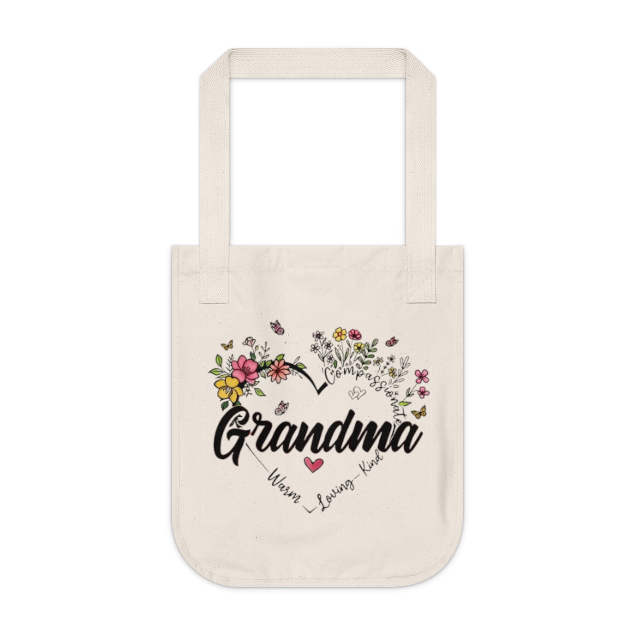 Lightweight but sturdy, this organic canvas tote carries more than groceries — it carries moments. The natural, unprocessed cotton has a warm, slightly flecked texture that feels honest and lived-in. Wide web handles with reinforced stitching sit comfortably on the shoulder, while the roomy single compartment swallows market finds, library books, or knitting projects. The floral “Grandma” artwork adds a tender, homespun touch, turning everyday errands into a small celebration of family and memory. Subtle details like the Econscious tag and tear-away label keep the bag simple and considerate from fiber to finish.